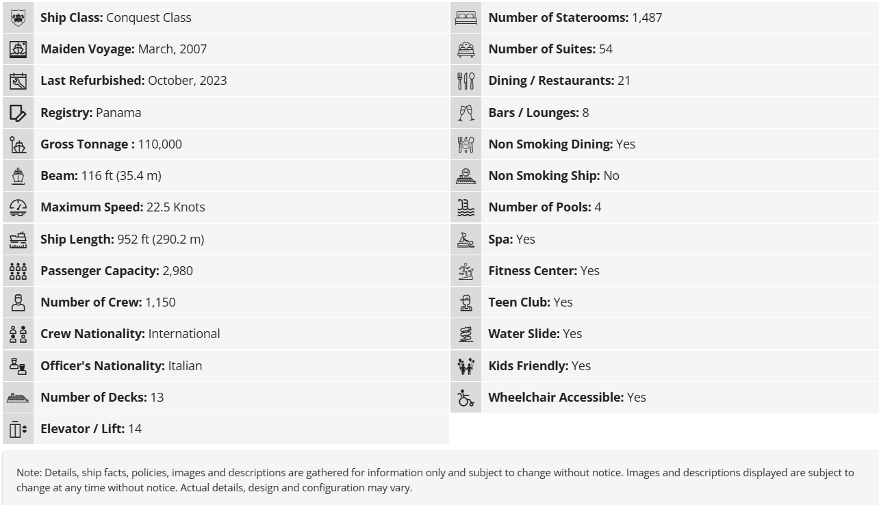 Busy Elevators: During peak times (like dinner or disembarkation), the elevator wait times can be longer due to the ship’s traditional vertical layout.
